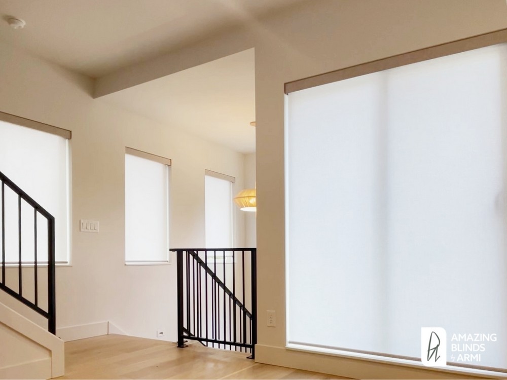 Modern Motorized Roller Shades for a Townhome on 30th Ave W in Magnolia, Seattle, WA