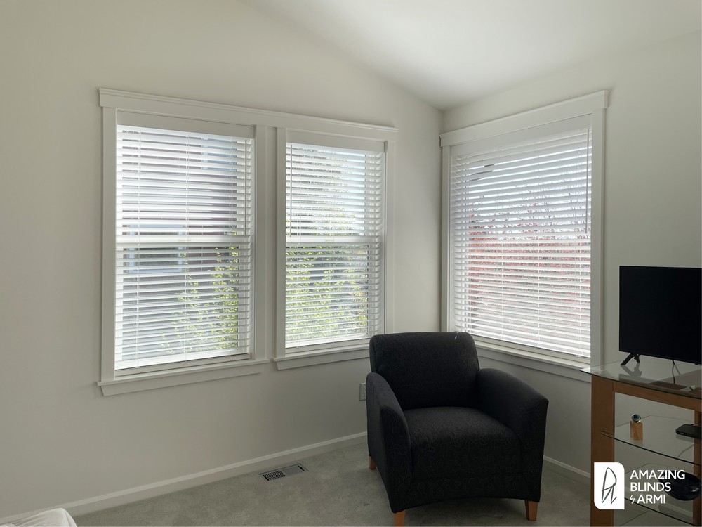 Our clients have been living in their single-family home in Seattle’s Ballard neighborhood for over 30 years. While in the process of refreshing their interiors with a new coat of paint, they decided it was time to update their window coverings as well. Their existing mini blinds had served them well, but they were ready for a more modern look—without sacrificing the functionality they valued, especially the ability to tilt for light control. The new faux wood blinds are not only easy to operate but also crafted with quality materials that complement their newly painted interiors. The clients were genuinely pleased with the transformation—both in appearance and functionality.